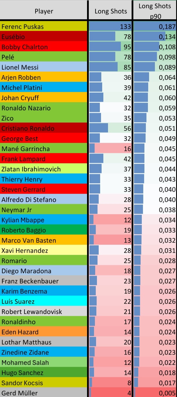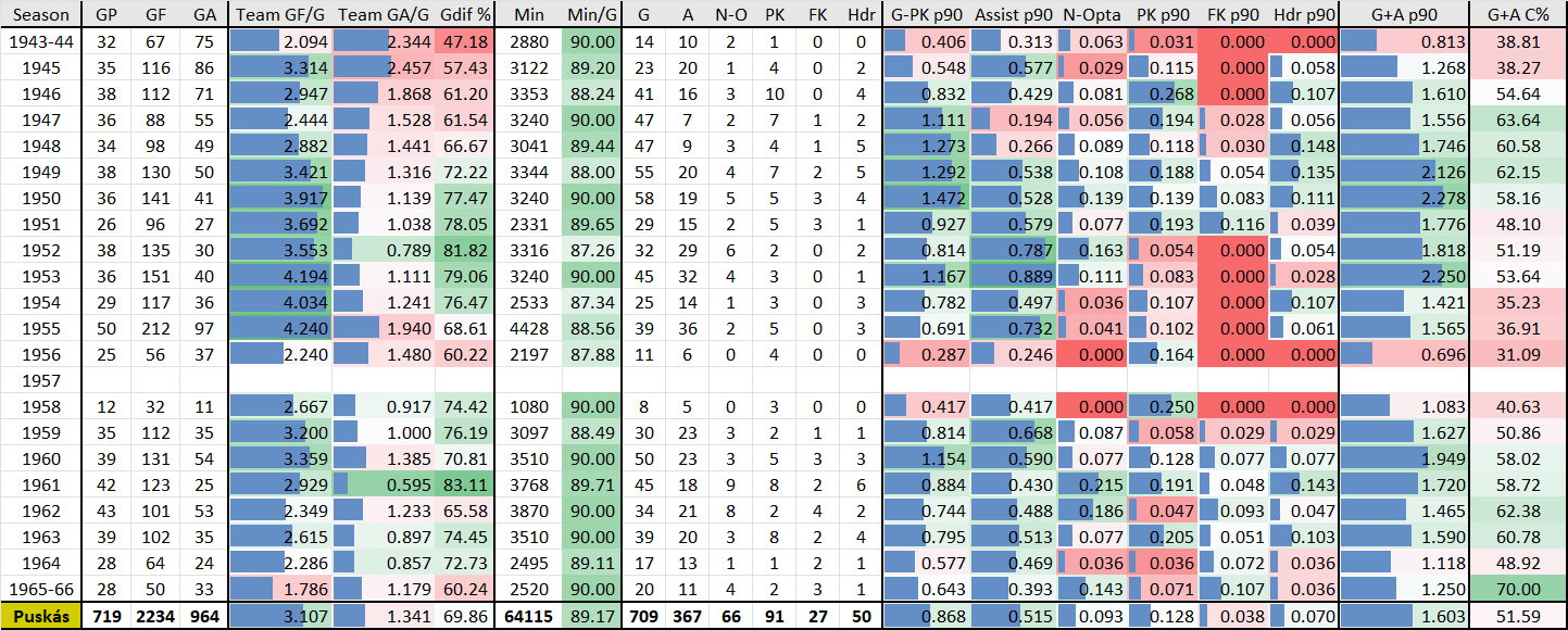 * Puskas: .85 x 3 (1959, 1960, 1966 Champions League) + .65 (1952 Olympics) + .45 (1948-1953 Central European Cup) + .35 (1947 Balkan Cup) + .25 (1960 Intercontinental Cup) = 4.25 Won Super Bowl Points + Runner-Up Silvers At .667% Value Of: 1.33 (1954 World Cup) + .85 x 2 (1962, 1964 Champions League) + .45 (1955-1960 Central European Cup) = 2.32 + 4.25 = 6.57 Total Super Bowl Finalist Points | Additionally, 21 Team Titles Are Validly Credible And Eligible To Be Argued For With The 1948 Balkan Cup, The 1956 Top League And The 1954 World Cup Final. |